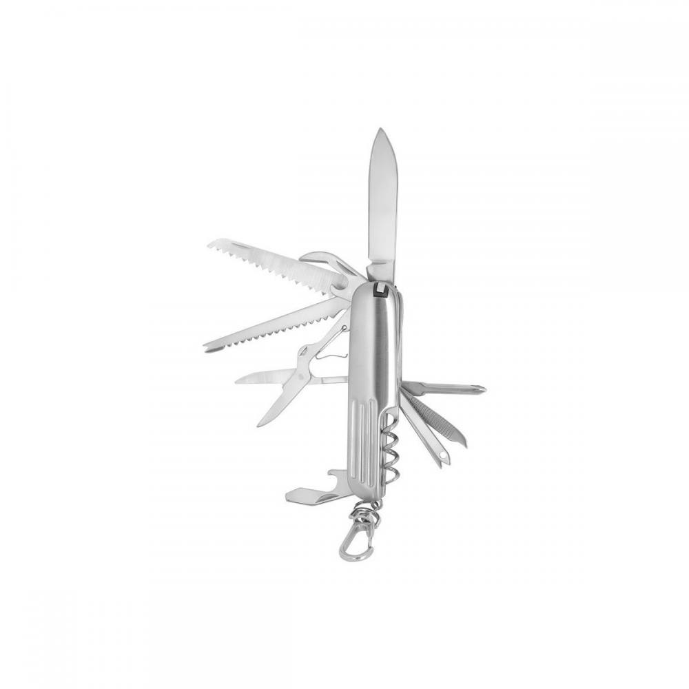• 13 farklı işlev: Bıçak, ağaç testeresi, makas, yıldız tornavida, mektup açacağı, tirbuşon, konserve açacağı, şişe açacağı, törpü, cımbız, kürdan, tığ deliği